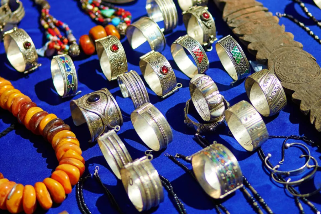 - Joyería: Predominantemente en plata en las zonas rurales bereberes, a menudo combinada con piedras semipreciosas como el ámbar y el coral. Sus diseños no solo son estéticos, sino que también están cargados de simbolismo y significados de protección.